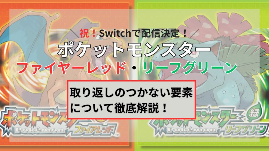 Swtch版の配信が決定して盛り上げっている、ポケットモンスターファイヤーレッド・リーフグリーン 僕もその中の一人! 過去にゲームボーイアドバンスで発売された旧版と 今回Switchで配信されるver.の違いについて解説していきます。 旧(GBA)版とSwitch版... -